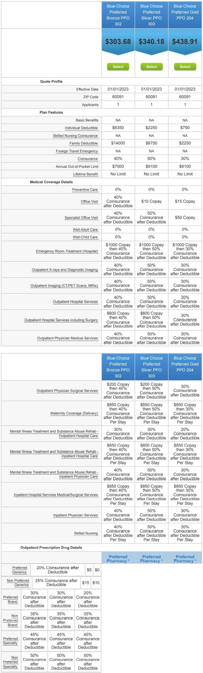 In our experience, we have found that the insurance brokers will likely point you to the Blue Cross Blue Shield (BCBS) PPO Bronze Plan. Choosing the Bronze plan to cover a single child, will cost you $303.68 and get you the same services as the other plans, which are more expensive.